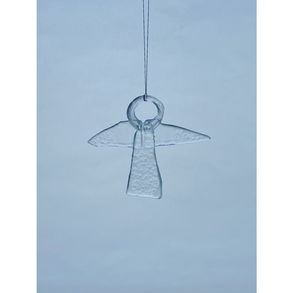 Jemný, hravý, minimalistický skleněný anděl.
