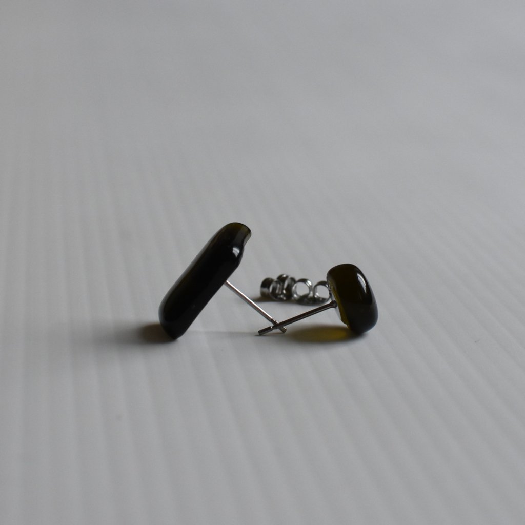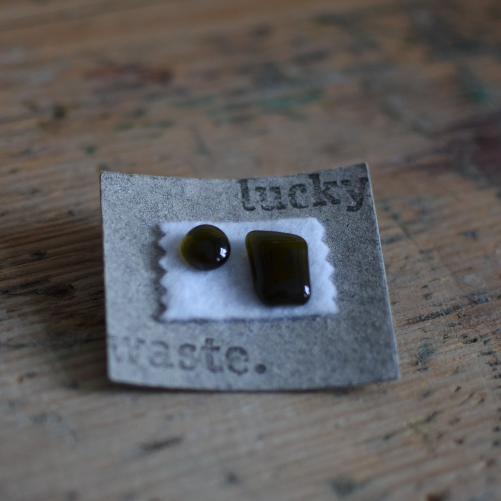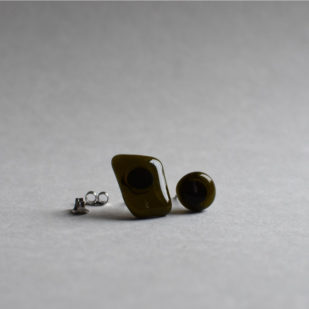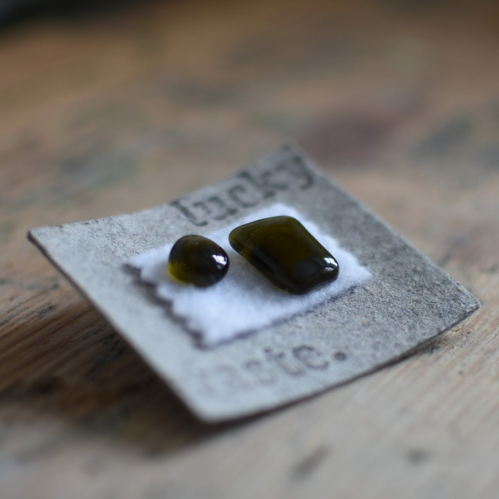 Asymetrický pár tmavě zelených náušnic. Působí luxusním dojmem, vhodné i k večerním šatům.