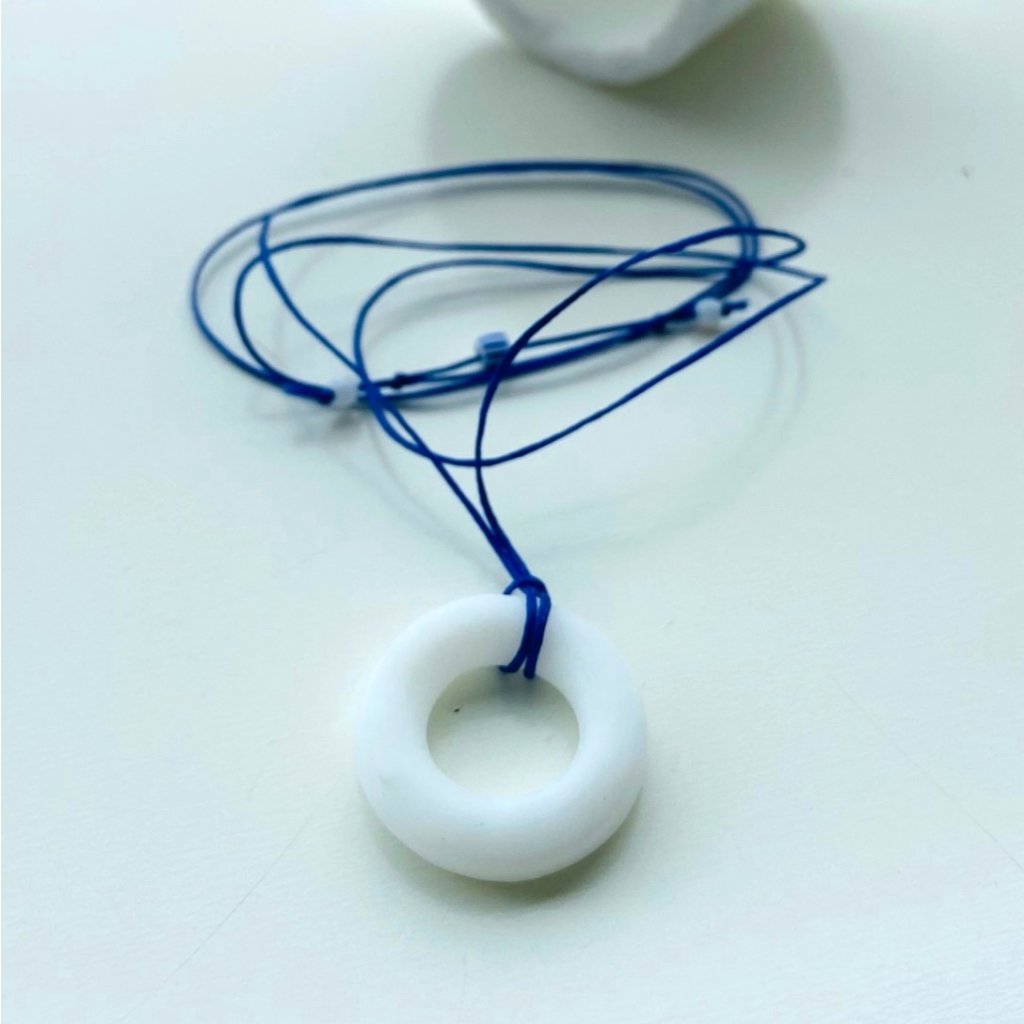 Kroužek bílý jako sníh, připomíná porcelán, ale je ze skleněné láhvičky :).