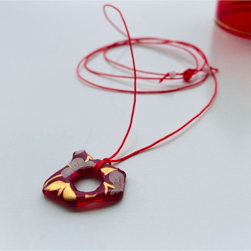 Vyroben z nádherných starých skleniček z rubínového skla, úplný poklad :).